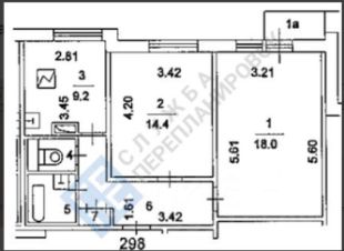 Две изолированные комнаты, общая площадь 53.7 кв.м