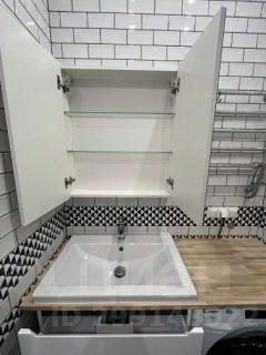 Санузел: совмещенный. В санузле душевая кабина, унитаз, гигиенический душ, умывальник с вместительной тумбой, столешница из натурального дерева, зеркальный шкафчик, полотенцесушитель и стиральная машинка с сушкой.