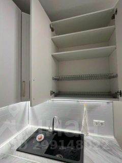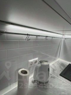 Кухня-гостиная: два больших окна, диван с пружинным блоком, который раскладывается в полноценное спальное место, кондиционер, стеллаж, раскладной кухонный стол, набор стульев, люстра с регулировкой (теплый/холодный свет, яркость). Кухонный гарнитур с просторными шкафами, подсветкой рабочей зоны и всей необходимой техникой (полноценный холодильник, электрическая варочная панель, духовка, посудомоечная машинка, вытяжка, электрочайник).