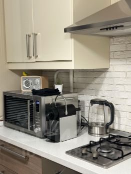 В квартире есть всё необходимое для комфортной жизни: посуда, полотенца, халаты, тапочки, фен, утюг с гладильной доской, электрический чайник, микроволновая печь, стиральная машина, кондиционер.