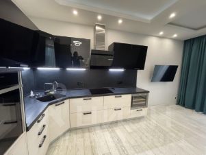 В квартире выполнен современный дизайнерский ремонт .Просторная гостиная объединённая с кухней,оборудованной современной техникой от ведущих мировых производителей .Имеется ПММ ,винный холодильник,индукционная плита,духовой шкаф,встроенная мебель,