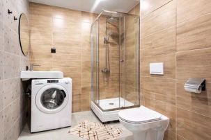 Апартаменты укомплектованы электрической плитой, стиральной машиной, чайником, телевизором, холодильником, феном, утюгом и микроволновкой.