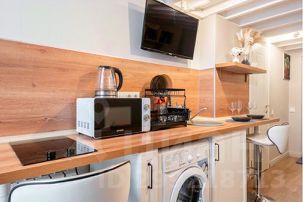 - Апартаменты укомплектованы электрической плитой, стиральной машиной, чайником, телевизором, холодильником, феном, утюгом и микроволновкой.