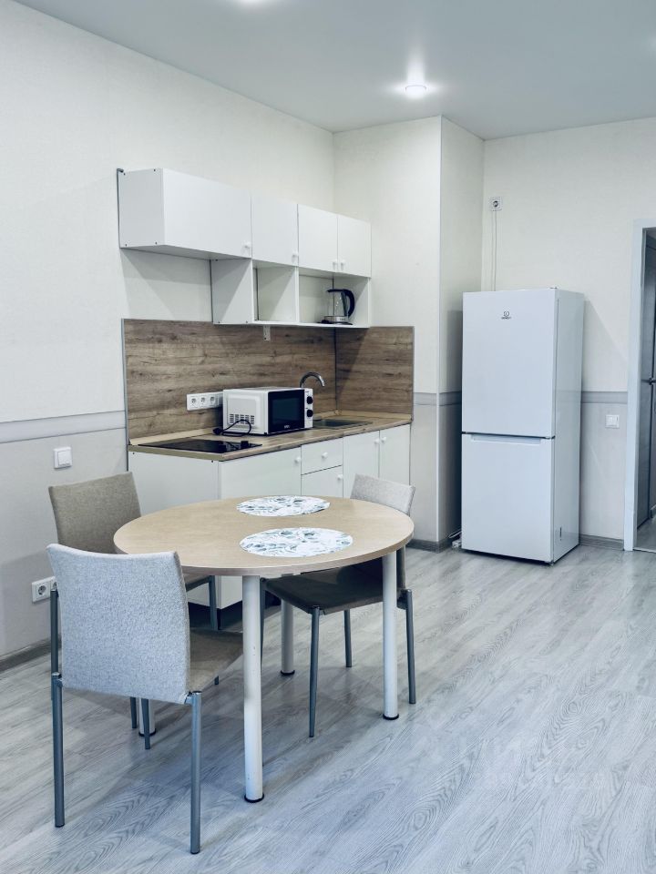 7. В квартире есть раскладной диван, кухонная зона, кухонный стол и стулья, микроволновка, вопросная панель, посуда, холодильник, стиральная машина, шкаф для одежды, письменный стол, пылесос, отпариватель.