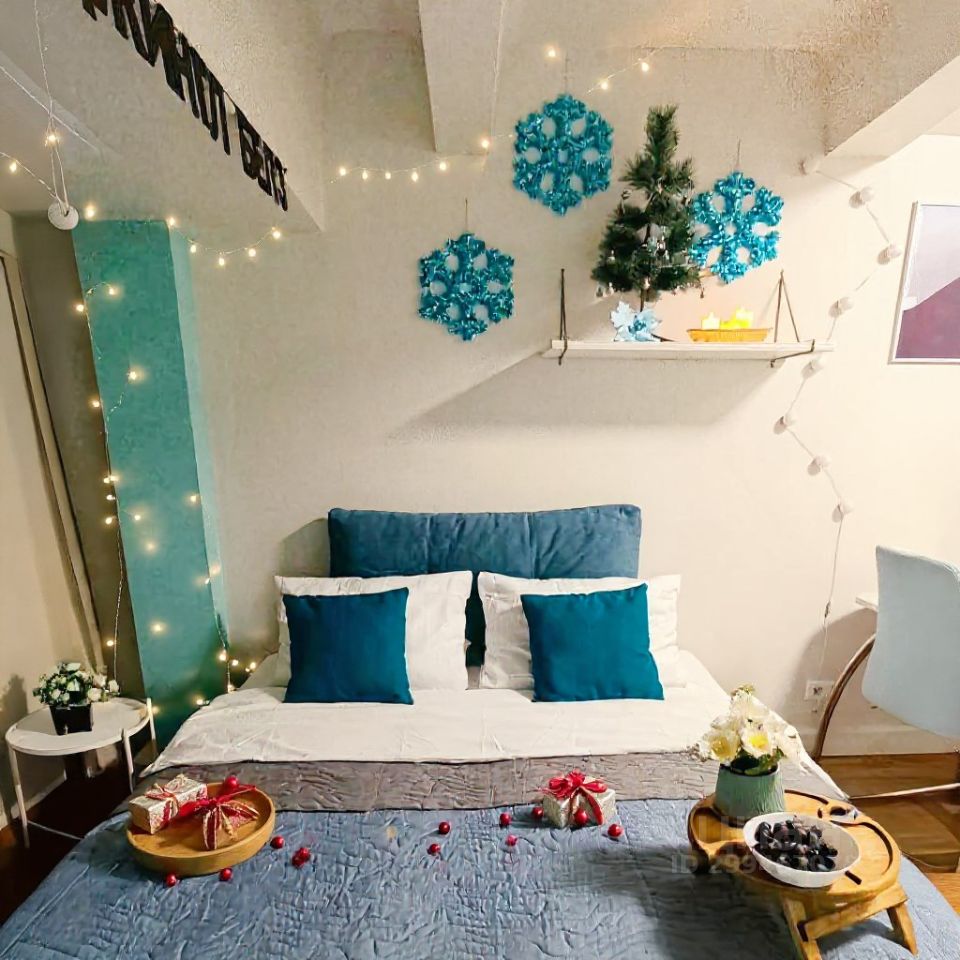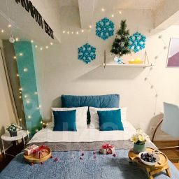 В студии вся новая мебель, постельные принадлежности, посуда, бытовая техника, 7 разных режимов освещения. Стиральная машина, утюг, фен, чайник, плита, холодильник, СВЧ, Смарт-TV, Wi-Fi.