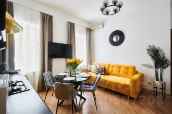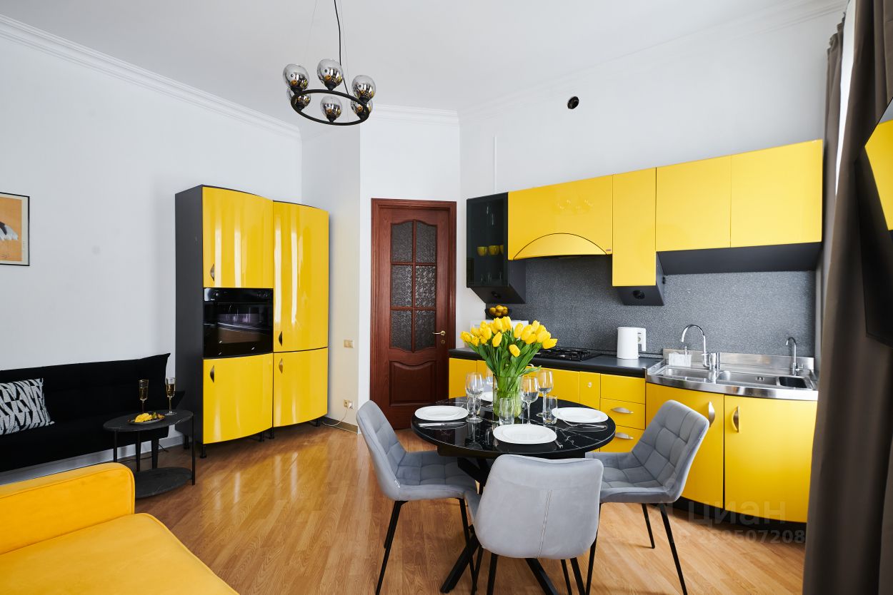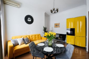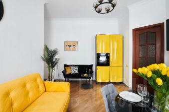 Представьте квартиру, которая встречает вас солнцем даже в пасмурный день. Этот интерьер словно создан для хорошего настроения: жёлтая кухня, диван, кресла — яркие акценты наполняют пространство теплом и светом. При этом квартира спрятана в тихом переулке, окна спален выходят в зелёный двор, а главные достопримечательности Москвы — в 10 минутах прогулки.