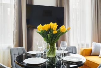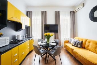 Брюсов переулок, 2/14: солнечная квартира с жёлтыми акцентами в тихом центре у Кремля