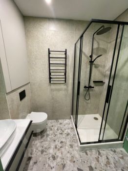 - 2 совмещенных санузла (один со смарт-дверью), есть проточный водонагреватель;
