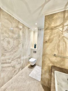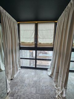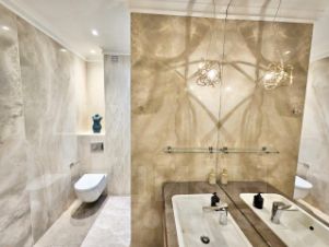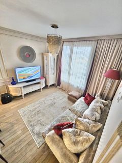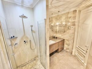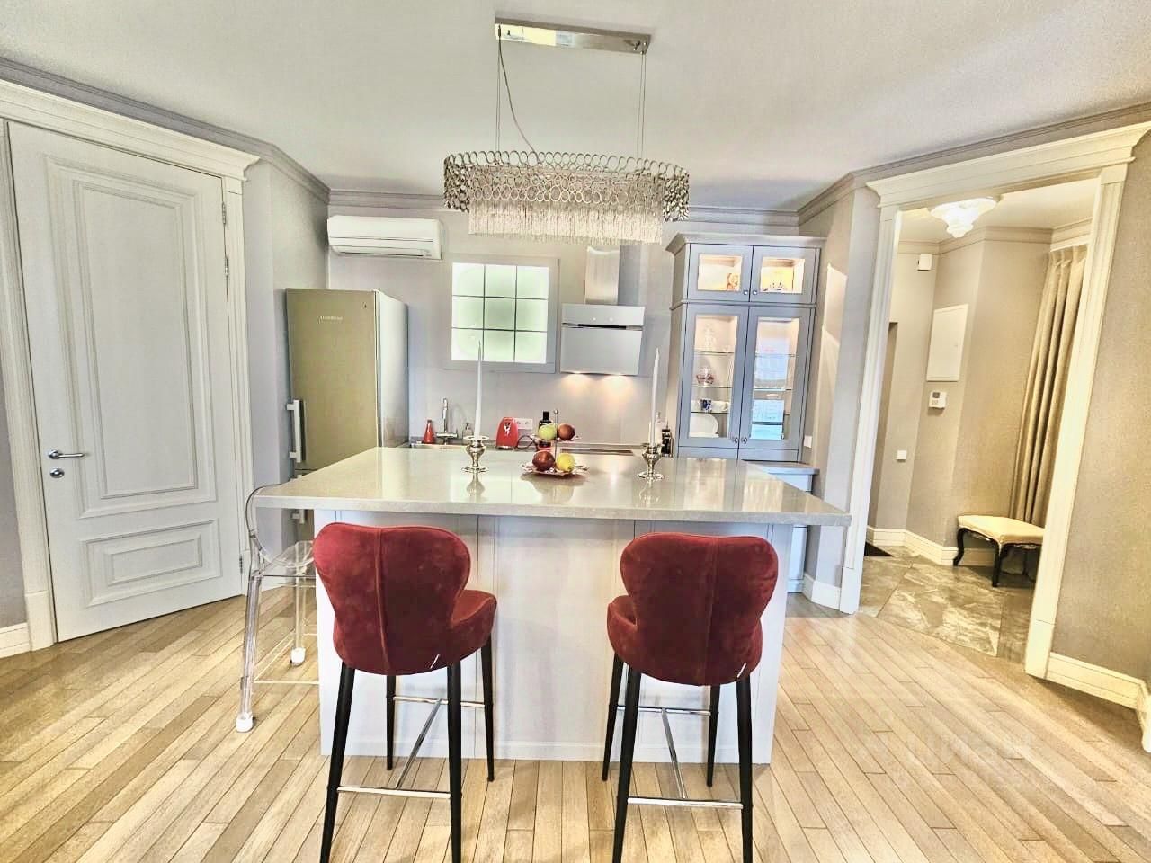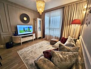 Все материалы отделки класса премиум: пол керамогранит + паркет, зонированное освещение. Квартира оснащена всей бытовой техникой: кондиционеры, гладильная паровая система, пылесос.