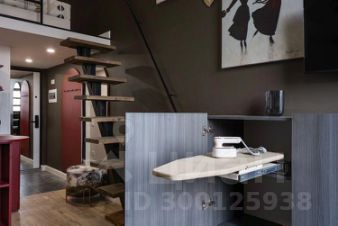 гостиная- кухня с рабочем местом, совмещенный санузел с душем, много мест хранения вещей в виде шкафов.