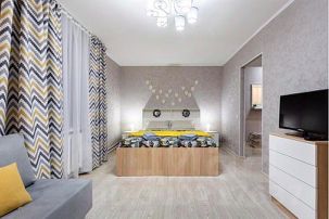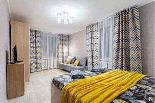 Квартира стандарт-класса.В квартире имеется вся бытовая техника(телевизор, холодильник, стиральная машина, плита газовая, чайник, утюг).По спальным местам двуспальная кровать и двуспальный диван (на фото не видно, т.к.подвезли недавно).Интернет Wi-Fi.Посуда, постельное белье, полотенца предоставляются.