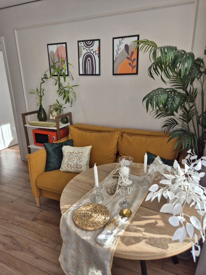 Интерьер выполнен в дизайнерском стиле: светлая, солнечная, ухоженная.
