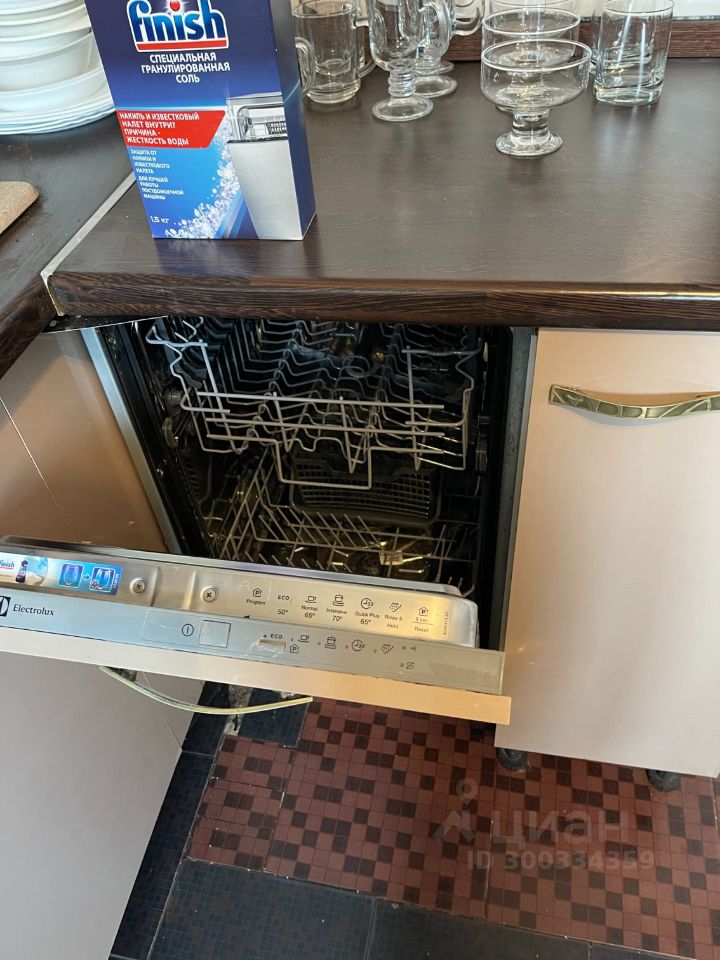 В квартире обустроенная кухня с посудомойкой, микроволновкой, холодильником и телевизором. В комнате есть места для хранения, телевизор, кондиционер, двуспальная кровать.