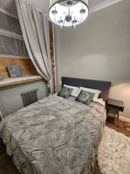 Стильные и уютные апартаменты Мастер и Маргарита с новым дизайнерским ремонтом и интерьерной росписью в ванной комнате, полностью оборудованные: новая встроенная кухня со всей техникой: плита, духовой шкаф, холодильник, посудомоечная машина, микроволновка, чайник, ванная с люксовым душевым сантехническим оборудованием (тропический душ), оборудованная стиральной машиной, феном, утюгом трамвайчик на интерьерной росписи в ванной поднимет вам настроение с утра двуспальная кровать качественный матрас, белье отельного класса позволят хорошо высыпаться двуспальный диван дополнительные два спальных места допускают размещение в апартаментах до 4х гостей Отличное расположение! Рядом самый центр Москвы, но в наших апартаментах будет тихо - наш дом расположен в маленьком тихом переулке. Дойдите до Нового Арбата пешком за 10 мин, до м.Смоленская за 4 мин пешком, до набережной Москвы-реки за 5 мин пешком. Возможность быстро и удобно добираться до всех достопримечательностей Москвы, в любую ее часть без использования машины, а также до аэропорта или ж/д вокзала. Вблизи от апартаментов находятся: Смоленский пассаж с супермаркетом Spar (1 мин ходьбы), ВкусВилл (3 мин ходьбы), рестораны. Апартаменты расположены в районе МИД и большого количества посольств рядом. Парковка во внутреннем дворе бесплатная для наших гостей !!! Внимание В апартаментах категорически запрещено: курение; проведение вечеринок; проживание с животными(по предварительному согласованию) Курение запрещено как в самих апартаментах, так и в подъезде и на лестничной площадке