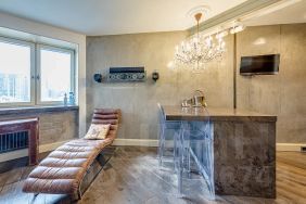 В квартире выполнен дорогой ремонт с использованием качественных и натуральных материалов: французский пол-массив дуба,мрамор, латунь -на шкафах.