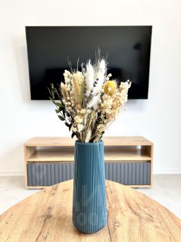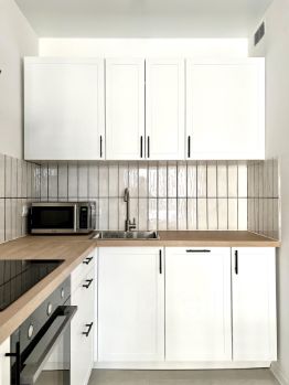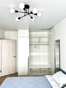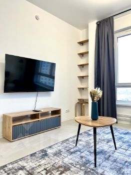 Из техники установлены: 2 кондиционера, стиральная машина, посудомоечная машина, холодильник, духовка, индукционная варочная панель, вытяжка, микроволновка, телевизор. Для удобства также есть фильтр для питьевой воды (обратный осмос), пылесос, чайник, набор посуды, сковорода и кастрюля, подходящие для индукционной плиты.