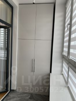 на балконе шкаф с гладильной доской. уютная зона отдыха с теплыми полами.