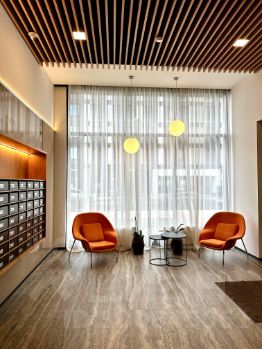 Охраняемая территория, презентабельное лобби! Вся инфраструктура на территории ЖК (кафе-пекарня, аптека, пункт выдачи OZON, винный магазин и тд). Рядом в пешей доступности 10 минут находится метро Румянцево, а также 2 крупных БЦ Румянцево и БЦ Comcity, где есть фитнес клубы, магазины и развлекательные центры и тд. Можно прогуляться до Говоровского леса.