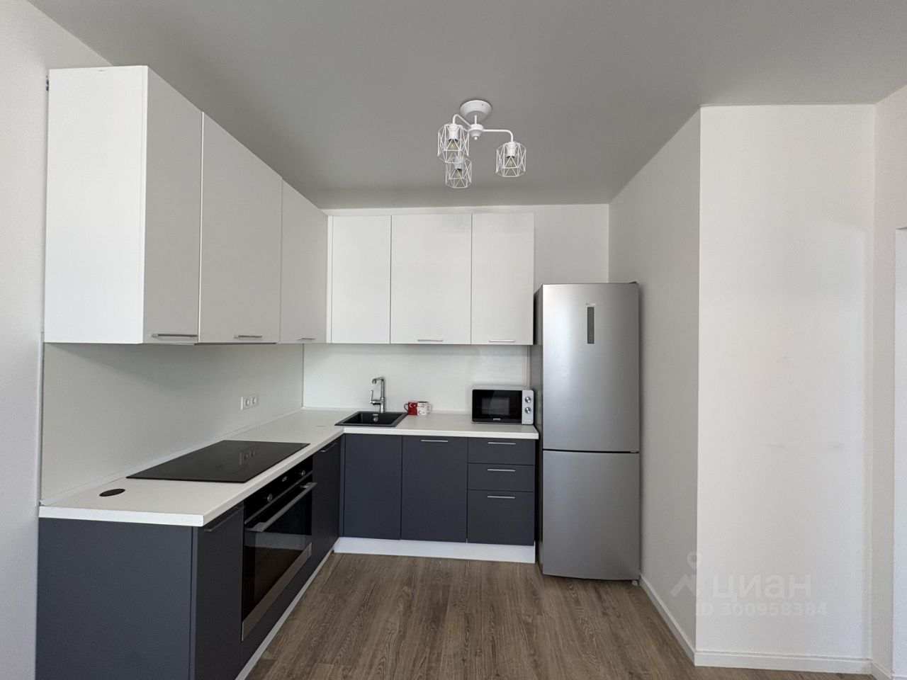 В квартире выполнен качественный ремонт, установлен современный кухонный гарнитур - индукционная варочная панель, духовой шкаф, холодильник, посудомоечная машинка, вытяжка, стиральная машинка.