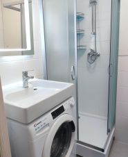 Квартира оборудована кухонным гарнитуром, мебелью и бытовой техникой. Есть холодильник, стиральная машина, электрическая плита, кухонные принадлежности, посуда, столовые наборы и тд.