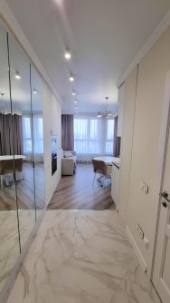 Сдается квартира-студия в новом ЖК Тринити от собственника на длительный срок с дизайнерским ремонтом и кондиционером. 5 минут пешком до метро, 20 минут пешком до МЦК, D3 и аэроэкспресс до Шереметьево, 20 минут до ВДНХ на прямом автобусе, 10 минут на авто до МКАД. Закрытый двор, вид на парк "Лихоборка". В доме есть магазины, фитнес, кафе.