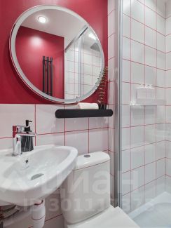 В коридоре стоит стиральная машина. Душевая стойка с тропическим душем, полотенцесушитель.