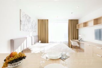В номере вас будут ждать телевизор. Оснащение зависит от выбранной категории номера.