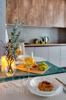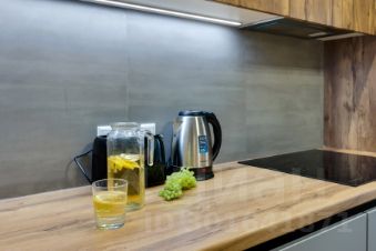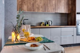 Кухонная зона с современной техникой:• Электроплита• Духовая печь• Холодильник• Посудомоечная машина• Электрочайник• Микроволновка• Тостер• Полный набор посуды• Приветственный чай и кофе, сахар, соль, специи. Санузел с ванной. Утюг, гладильная доска, сушилка, фен. Просторная прихожая.