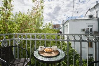 При входе вы ощущаете атмосферу тепла и уюта: просторная гостиная с высокими потолками и окнами с видом на известную Малую Бронную и живописный двор дома. Также в вашем распоряжении уютный балкон. Данная квартира идеально подойдет как для романтического уик-энда вдвоем, так и для комфортного пребывания всей семьей. Великолепное сочетание стильного дизайна, функциональности и удобств создает атмосферу, которая способствует приятному времяпрепровождению.
