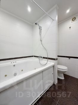 Санузел совмещенный, в плитке, установлена ванна джакузи, стиральная машина.