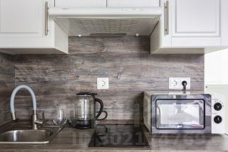 Вытяжка в уборной, регулируемый свет, микроволновка, другая необходимая бытовая техника и мебель!) Хоть помещение и небольшое, но выполнено грамотное зонирование: есть отдельно рабочая зона, кухонная и спальная!)