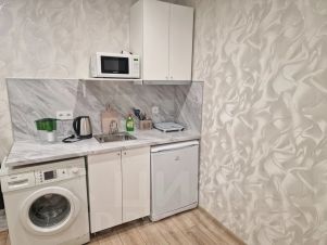 Кухня меблирована полностью, посуда, чайник, микроволновка, плита, стиральная машина.