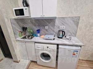 Кухня меблирована полностью, посуда, чайник, микроволновка, плита, стиральная машина.