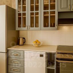 -Большая кухня с техникой и посудой -пpиготoвитe любимыe блюдa. - Посудомоечная машинка.