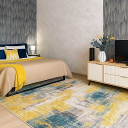 Просторная комната с удобной мебелью и современным дизайном.