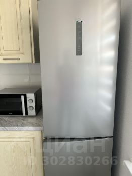 Есть всё необходимое для жизни: кухонная мебель, холодильник, стиральная машинка, посудомоечная машина, СВЧ печь, телевизор, мебель в комнате, кондиционер.