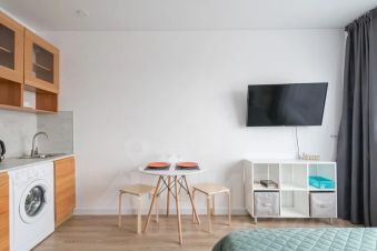 В квартире есть вся необходимая мебель и бытовая техника, включая стиральную машину, индукционную варочную панель, холодильник, микроволновую печь и кондиционер.
