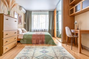 Все необходимое для комфортного проживания: противошумные стеклопакеты, кондиционер, двуспальная кровать с удобным матрацем, большой шкаф купе в комнате и в коридоре, стиральная машина, оснащенная всем необходимым кухня с изумительной столешницей из массива ясеня, сантехника Grohe, медиацентр, проектор, интернет.