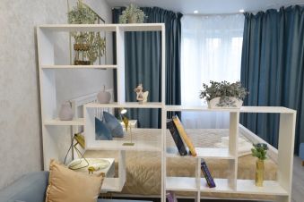 - В спальне-гостиной широкую двуспальную кровать с ортопедическим матрасом, гостиную зону с диваном