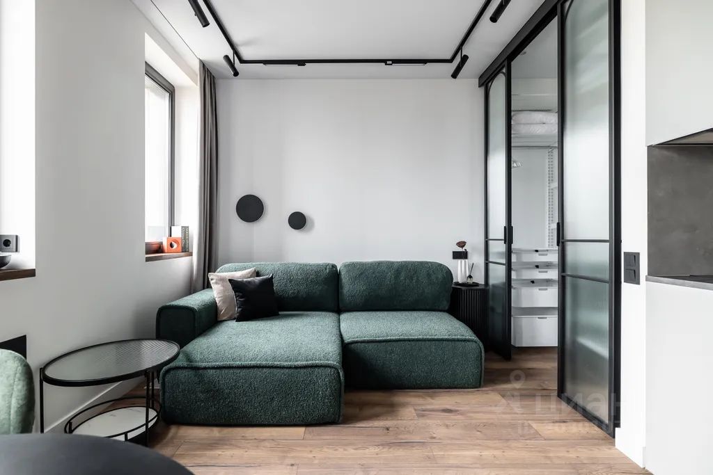 В зоне спальни для вас будет подготовлен широкий диван с ортопедическим основанием. Мы используем гипоаллергенные подушки и одеяла и мягкое хлопковое бельё - все будет подготовлено для вас. Около кровати много розеток, а для уютной атмосферы вечером есть несколько вариантов подсветки и дополнительных источников света.