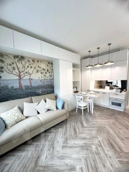 В этом году в апартаментах был сделан современный, дизайнерский ремонт и в них есть абсолютно всё для комфортного проживания: Wi-fi, фильт для воды, приточно-вытяжная вентиляция, кондиционер, пол с обогревом, диван с ортопедическим матрацем и вся бытовая техника (кофемашина, чайник и тостер, стиральная машина и посудомойка, духовой шкаф с СВЧ, полотенцесушитель, фен).