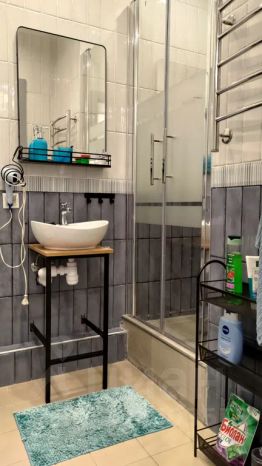 Ванная оборудована душевой кабиной, стиральной машинкой, водонагревателем, феном.