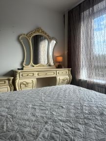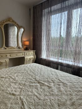 В квартире есть все необходимое для комфортной жизни: двуспальная кровать шириной 180 см с новым ортопедическим матрасом, в кухне-гостиной новый раскладывающийся диван со спальным местом 150 см, новая техника (плита и духовка), микроволновая печь), стиральная машина, два телевизора в комнате и кухне, фортепиано, шкаф, комод и прикроватные тумбочки. На окнах установлены сетки от насекомых и фиксаторы для проветривания. Мебель хорошего качества. В квартире абсолютно новые душевая кабина и входная дверь.