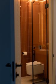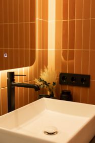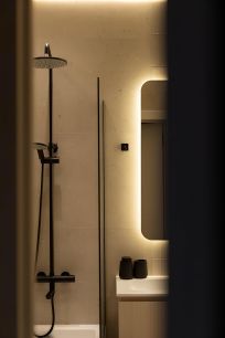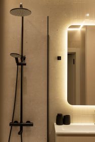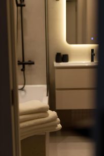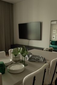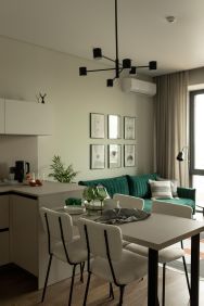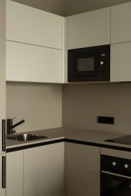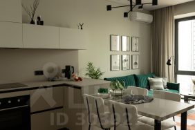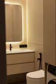 Кухня полностью оборудована, вся техника встроенная. В с/у установлена стиральная машина с сушкой.
