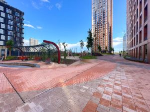 Оборудована дворовая территория, охрана 24 часа. Действующие продуктовый магазин и аптека.