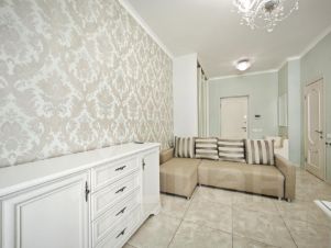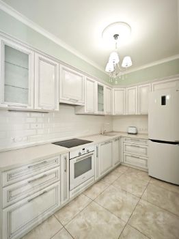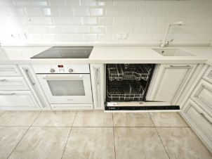 Квартира со свежим качественным евроремонтом, для комфортного проживания укомплектована всей необходимой мебелью и бытовой техникой. Установлен кондиционер, теплые полы. Высокие потолки - 3м. Квартира очень уютная и светлая. Кухонная зона с мебельным гарнитуром и встроенной техникой (варочная панель, духовой шкаф, посудомоечная машина, вытяжка), двухкамерный холодильник. Гостиная совмещена с обеденной зоной - телевизор, угловой диван-кровать, стол со стульями, комод. Спальня с двуспальной кроватью: ортопедический матрас 140 х 200 см, подъемный механизм с ящиком д/белья; вместительный встроенный шкаф-купе. Также в гостиной имеется зона кабинета с письменным столом. Совмещенный СУ с ванной, стиральной машиной-автомат и пр. Прихожая - встроенный шкаф-купе, комод и др.