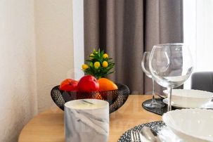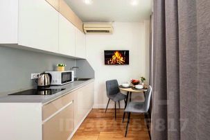 - Кухня с холодильником, плитой, микроволновкой, чайником и посудой