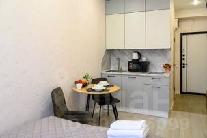 - Кухня с холодильником, плитой, микроволновкой, чайником и посудой
