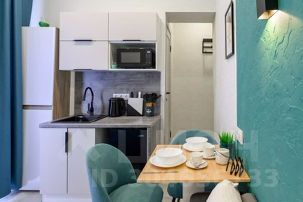 - Кухня с холодильником, плитой, микроволновкой, чайником и посудой