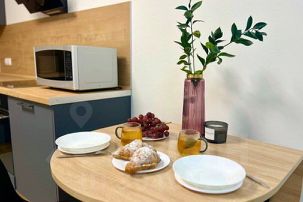 Бытовая техника (Холодильник с морозильной камерой, стиральная машина, электроплита на 4 конфорки, посудомоечная машина, электрочайник, фен); Вы сможете приготовить себе завтрак, обед и ужин